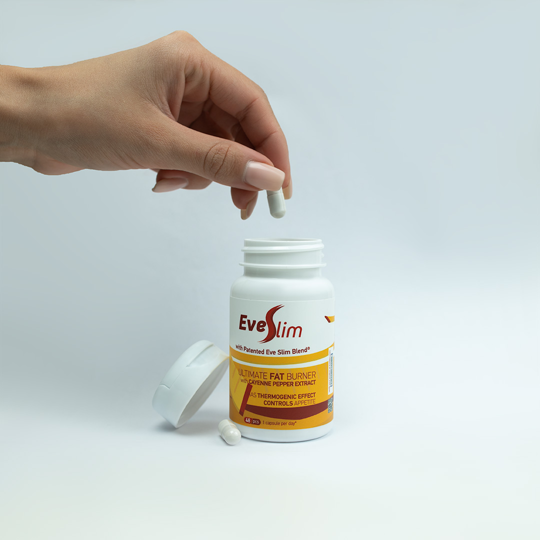 EveSlim con pimienta de Cayena es un producto eficaz para el tratamiento de la obesidad y el control del peso que puede estar relacionado con problemas metabólicos, colesterol alto o problemas de presión arterial. Cuando se consume según las indicaciones, junto con una dieta equilibrada y ejercicio regular, EveSlim con pimienta de Cayena favorece la pérdida de peso sostenida a través de la quema de grasa termogénica, la supresión del apetito y la mejora del metabolismo.