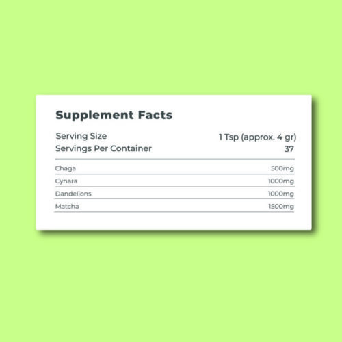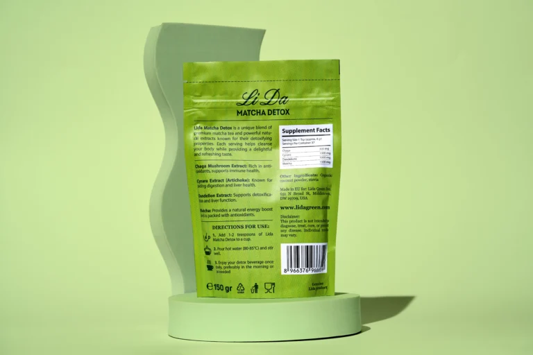 Lida Matcha Detox es una mezcla cuidadosamente formulada de ingredientes naturales, incluyendo Chaga, Cynara, Diente de León y Matcha. Está diseñado para apoyar la desintoxicación, aumentar los niveles de energía, promover la salud digestiva, y proporcionar ricos beneficios antioxidantes.