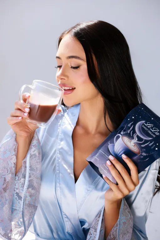 Lida Sweet Dreams es un lujoso suplemento para antes de acostarse diseñado para promover un sueño profundo y reparador y una relajación natural durante toda la noche. Combina melatonina para conciliar el sueño, L-teanina y reishi para aliviar el estrés, apigenina para una sedación suave y magnesio para mejorar la calidad general del sueño, con el fin de ayudarle a sumirse en un sueño tranquilo y despertarse renovado. Mejorado con un rico sabor a chocolate y sutiles notas herbales, esta mezcla cuidadosamente formulada transforma su rutina nocturna en un ritual de bienestar sensorial que prepara tanto el cuerpo como la mente para un descanso óptimo.